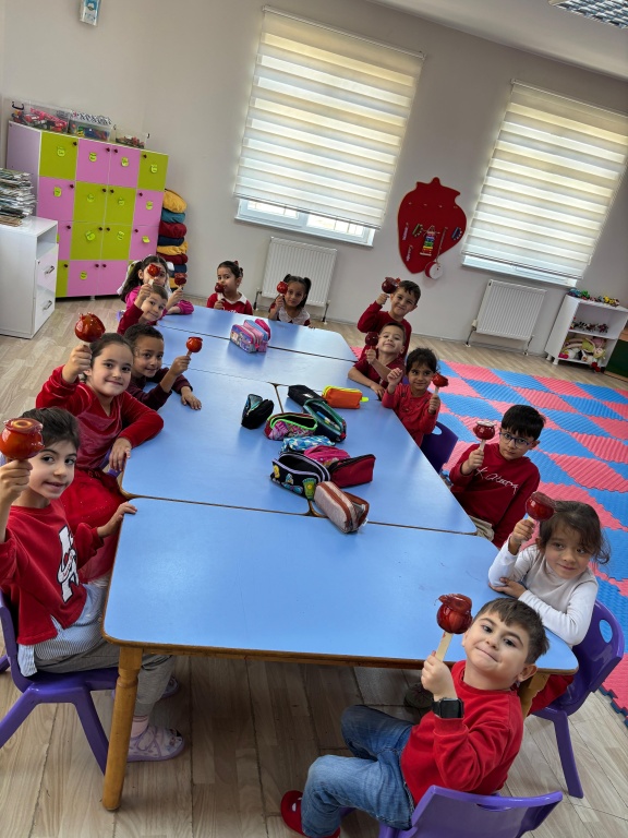 Çocuklarımız hem kırmızıyı öğrenmenin mutluluğunu yaşadı hem de kendi hazırladıkları şekerleri keyifle tattılar.